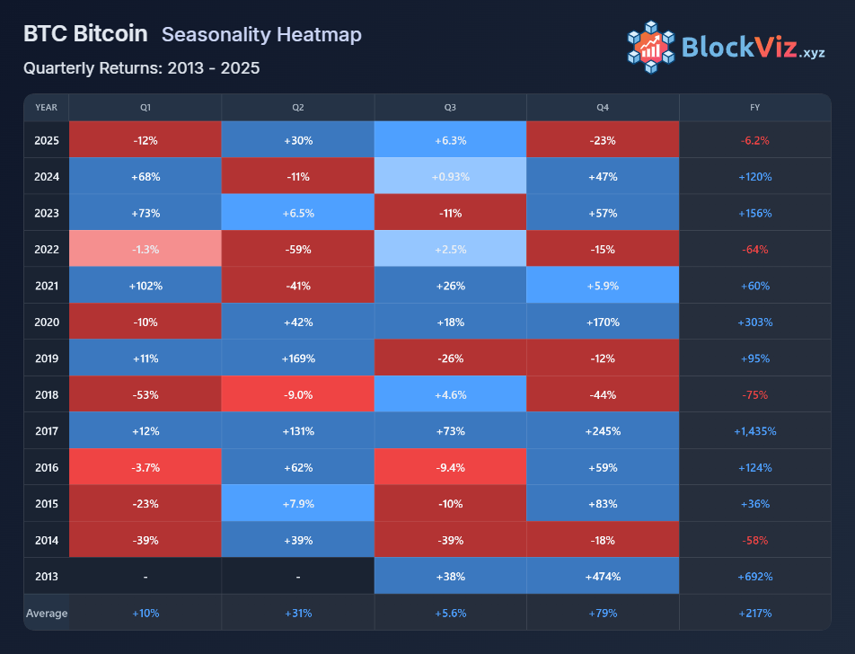 You have likely seen claims such as “Q4 is always bullish,” “September is weak,” or “Bitcoin rallies in Up-tober.” Some of these statements are directionally true. Many are misleading. Almost all are incomplete without context.