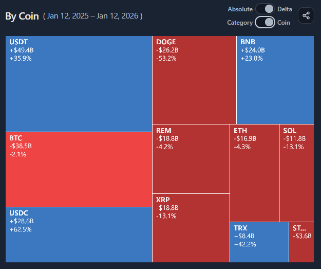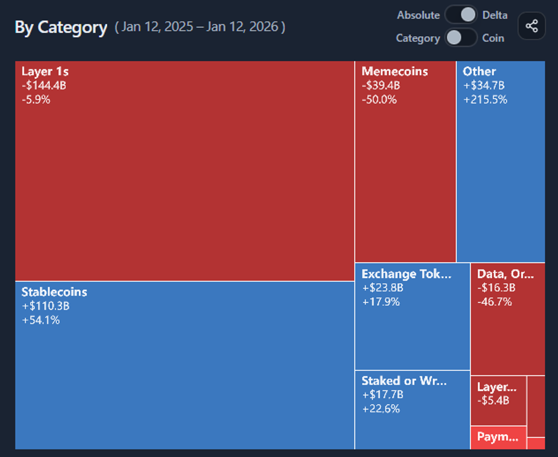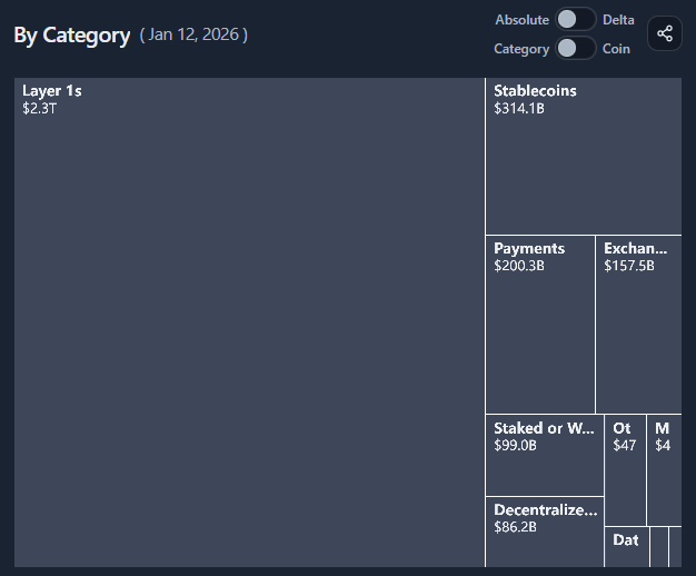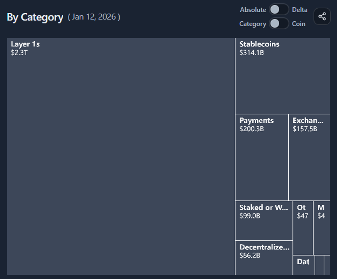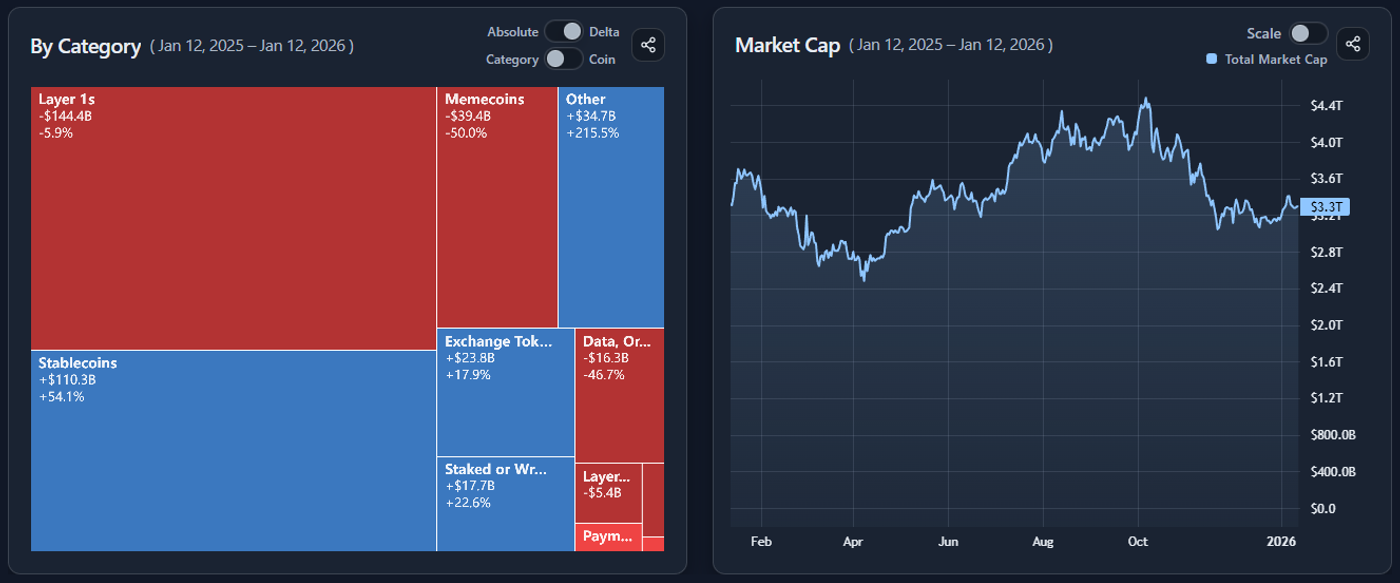 By combining a treemap with a linked time-series chart, it connects market composition with market evolution.
