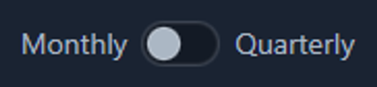 Choose an asset and toggle between monthly or quarterly aggregation.