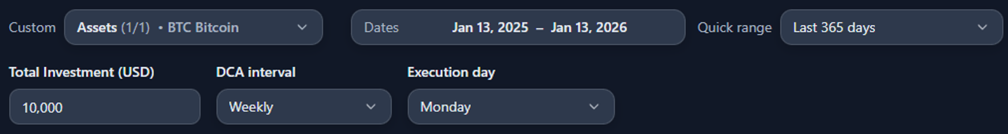 - DCA interval (daily / weekly / monthly, etc.)