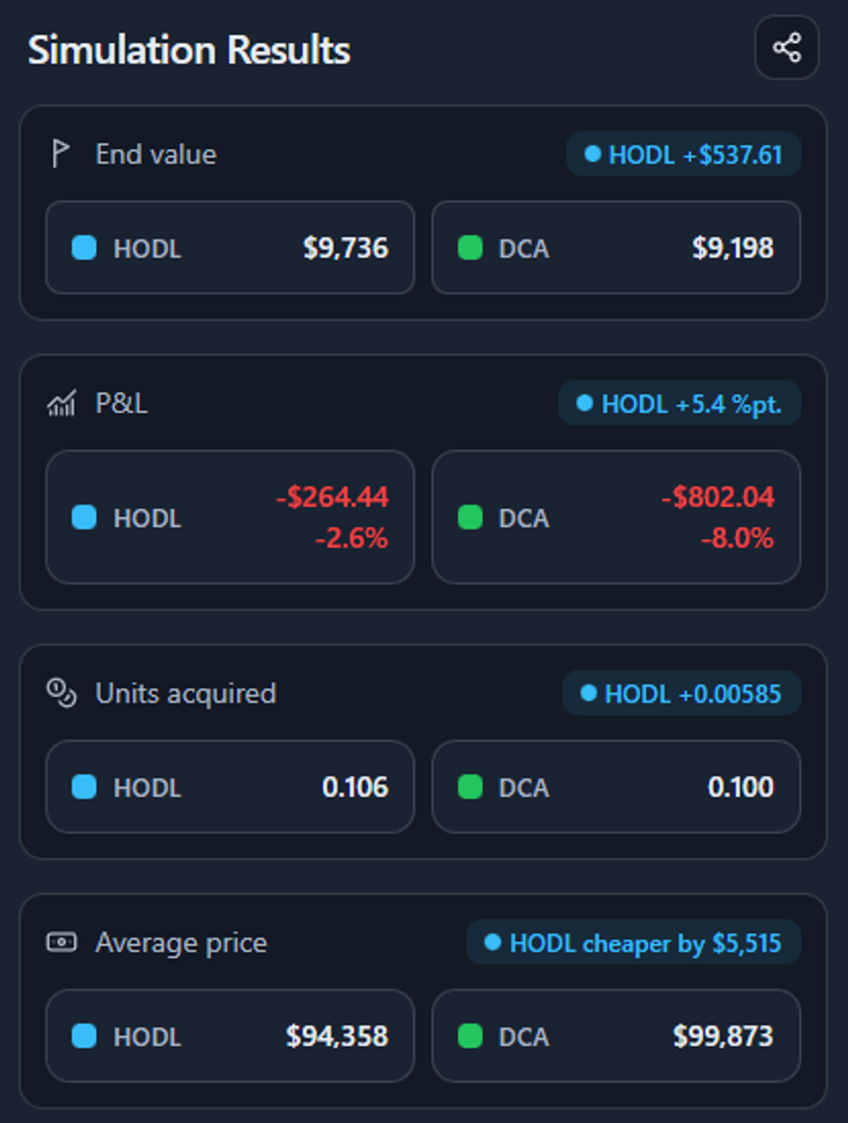- “Did DCA accumulate more units than HODL?”