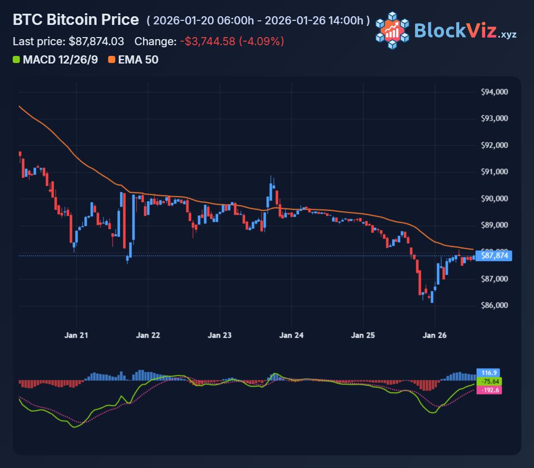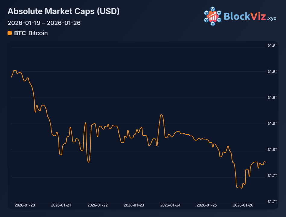 Macro risk-off hit hard. Renewed geopolitics plus shutdown deadline fears sent capital fleeing speculative assets. BTC traded like levered macro beta rather than "digital gold," with 360M in long liquidations amplifying the flush.