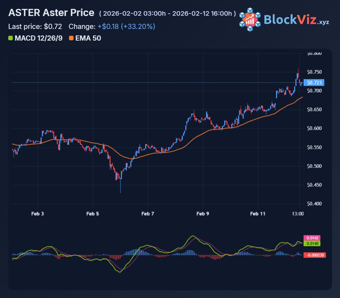 $ASTER trades at $0.72 today, up 9-10% in 24 hours amid a broader altcoin bounce. This marks its strongest daily gain since early February, lifting market cap to $1.77 billion as traders position ahead of the Aster Chain mainnet rollout next month.